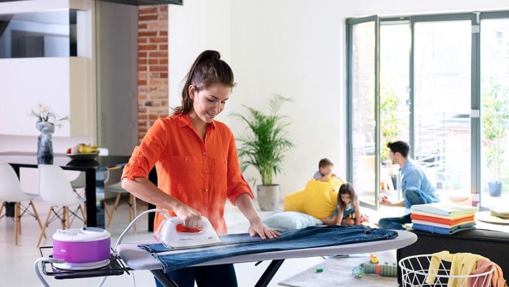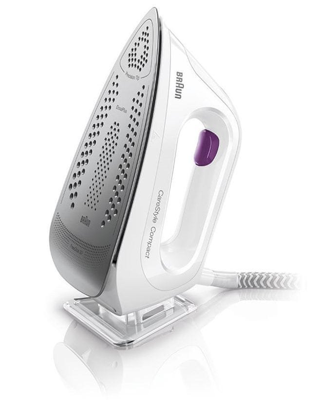 Kompaktní žehlička s parním generátorem v elegantním bílém provedení se sametově purpurovými prvky. Braun IS 2044VI přináší špičkové výsledky žehlení za polovinu času, a to díky kombinaci technologií DoubleSteam a FreeGlide 3D. Vysoký tlak pomáhá páře proniknout do tkaniny, a tak je žehlení snadnější. 3D žehlicí plocha zaručuje kluznost ve všech směrech.
